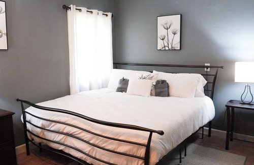 The suite is a remodeled garage unit that has been turned into a living space. The suite is attached (by a secured door) to the main home that MAY BE OCCUPIED by others during your stay. The door remains locked at all times and NO GUESTS ON EITHER SIDE have access to the lock.