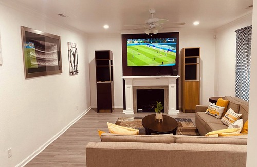 Escape to this beautiful cozy roomin picturesque Hampton. This terrific vacation rental offers a cozy retreat for 2 guests. The bedroom features a comfortable king bed, ensuring a restful night's sleep. You'll find all the necessary amenities like iron, heating, AC, hair dryer, washing machine, and WiFi. The bathroom is equipped with a hair dryer and a bathtub for your convenience. Whether you're exploring the charming city or simply relaxing indoors, this cool property is the perfect home away from home. We hope you'll enjoy your stay at our house.