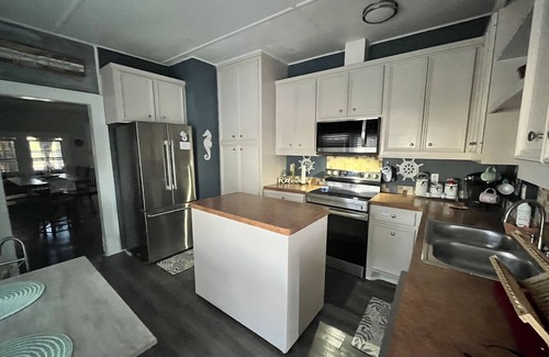 1940’s cottage on Galveston bay. This 3 bd/2bath is located between Houston and Galveston.Includes linens ,towels,kuerig coffe kitchen ware and basic necessities Has 2 private driveways 3 outdoor patio’s with fire pit and bbq grill. Includes Plenty of room for a boat/rv. Private neighborhood pier for fishing/relaxing steps away. Close to Kemah boardwalk ,Nasa, sylvan beach which has free boat ramp and much more