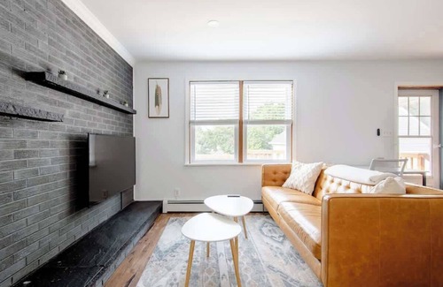 This unit is a rear addition of a single family home with a private entrance off the back deck. There is an open concept living space with a fully stocked kitchen with dishwasher, gas range, pantry, over the range microwave, breakfast bar seating and bright LED lighting. The living room has a leather couch, 55 in smart TV and wood burning fireplace. The full bathroom with shower is located right next to the bedroom with queen bed, 32 in smart TV.