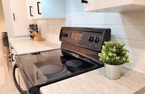 A brand new, modern fully renovated in 2021 ground floor apartment with French ambiance that is home away from home. Plenty of amenities, storage, laundry and fully equipped full size kitchen & Keurig coffee machine. Walking distance to beautiful St. Lawrence River and the three Nations Crossing to USA. High speed Wi/fi, and Smart TV with Roku and free Netflix streaming capabilities. Parking and keypad lock for easy check-in. Very comfortable for short or monthly stays! SMOKE FREE UNIT