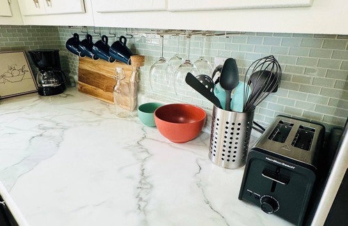 Get ready to relax in this adorable 2-bedroom apartment in Pekin few minutes from Peoria. The cozy bedrooms features a comfortable queen bed in one room and two twin bed in the second room. It is perfect for a good night's sleep. The living room offers a serene space to unwind.