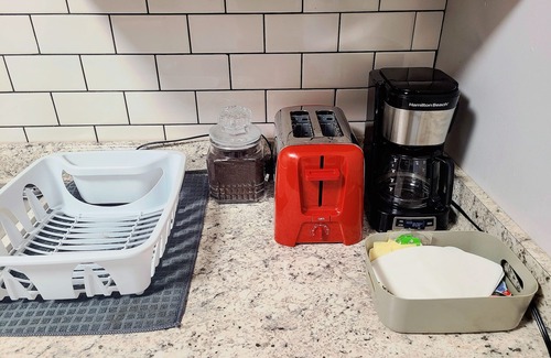The apartment building is located in a well-lit and safe area with exterior doors that stay locked. Avoid expensive parking near campus/downtown by utilizing the off-street parking spaces provided behind the building for guests only. (2 spots) A few minutes' walk will put you at the nearest bus stop where you can utilize public transportation to traverse across Lexington. When it's time to drive out to explore all the scenic and beautiful locations across Kentucky like the Gorge or Mammoth Cave, your vehicle will be waiting for you there safely. Don't forget about the Bourbon Trail! Once you're ready to relax and unwind, you'll find that the apartment is equipped with all the conveniences you need to recharge in comfort. A large flat screen smart TV is there for your convenience. Utilize your favorite streaming services to catch up on your favorite programs while lounging on the couch. Rest easy knowing that each apartment has adjustable AC/heat and each room is equipped with blackout shades and a box fan which is useful for white noise. Night owls and early risers will also appreciate the coffee maker located in the full kitchen. Whether you plan to eat out and dine at local restaurants or prepare your own meals, you'll be set during your stay. It would be our pleasure to provide any recommendations and tips during your stay. Feel free to reach out to us anytime!