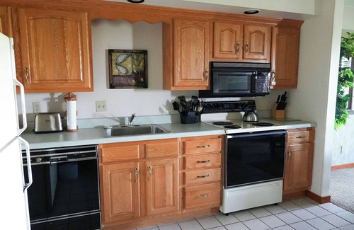 The small viewing deck off the dining room offers a view of the picturesque wooded landscape. Parking is guaranteed for one car per unit. However, there is plenty of overflow parking available on-site. The unit includes whole-house air conditioning, and a washer/dryer (laundry detergent not included), iron/ironing board in the bunk bedroom closet, expanded cable in the living room, dishwasher (detergent provided), and bed and bath linens (shampoo not included). Also included are extra paper towels, trash bags, and toilet tissue. During the summer months, this unit has access to the community pool. In addition, all guests are welcome to utilize the resort's main indoor/outdoor pools and hot tubs (reservations required).