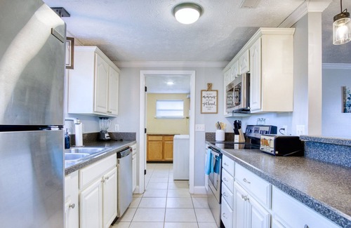 Relax with the whole family at this centrally-located fully fenced backyard home. Fully remodeled with new tile flooring, fully stocked kitchen, fresh paint and fast wifi. Large TV in living room as well as in master suite. Quiet neighborhood close to lots of restaurants and shops. Great location right off 295 so you can get to anywhere in Jacksonville quick.