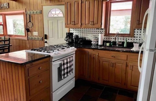 Riley's Lodge is cozy yet spacious and has all the comfort of home. The kitchen is equipped with a dishwasher, electric stove/oven, full size refrigerator, and all the kitchen gadgets you need including a Keurig, 12-cup coffee maker, tea kettle, microwave, toaster oven, crockpot, pots, pans, and cooking utensils. The open concept master bedroom is upstairs with a queen bed and en suite. Two more bedrooms are located on the first floor with ample beds. There is another full bathroom on the first floor with a beautiful large walk-in shower. There is a tv in the main living room as well as the finished basement where you will find a pullout couch and a futon. Need laundry done? The washer and dryer is in the basement laundry room. Enjoy playing games or doing a puzzle in the breezy and bright sunroom.