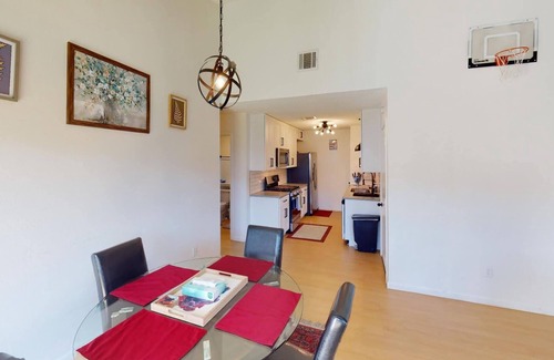 Nice and neat 3 bedroom home with patio/turf backyard area. Cozy stay with super fast wifi, 70 inch TV, and 1 car garage parking available.