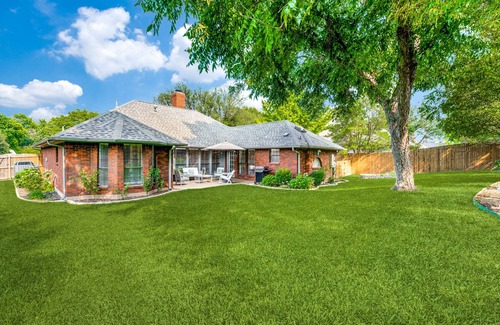 This bright, spacious home with modern yet warm design in a beautifully-maintained, tree-lined quiet neighborhood provides your group a backyard oasis just 15 minutes from Downtown FW, TCU, Dickey's, and all FW has to offer!