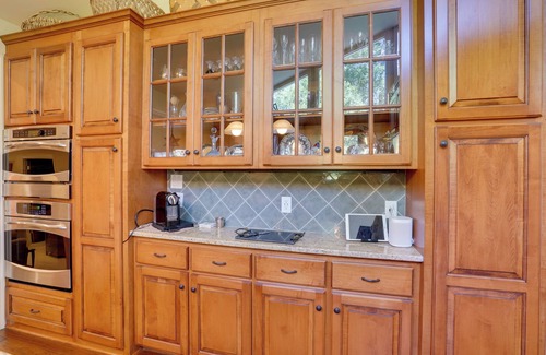 KITCHEN: Coffee maker, cooking utensils, dishware & flatware, dishwasher, microwave, toaster oven, wine glasses, wine refrigerator