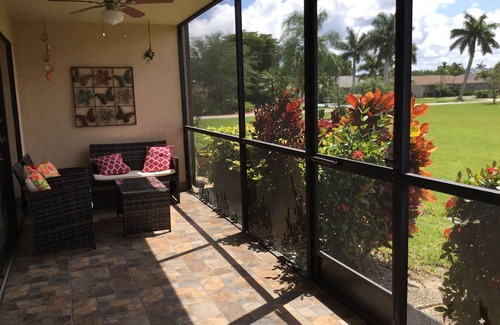 This charming condo is close to Naples beaches and Marco Island, restaurants and shopping centers. It is spacious fully furnished unit with two bedrooms (king and queen size beds), two bathrooms, a separate living room area with a sofa that can be turned into a full-size bed, full size kitchen, and a screened lanai. Also, it features a washer and dryer in the unit. The kitchen is fully equipped with a dishwasher, stove, microwave, fridge, cookware. Enjoy free Wi-Fi, cable TV and Roku. Master bedroom has a walk-in closet and bathroom with a shower. Guests can also enjoy a swimming pool conveniently close to the apartment. This charming condo is sure to be your home away from home!