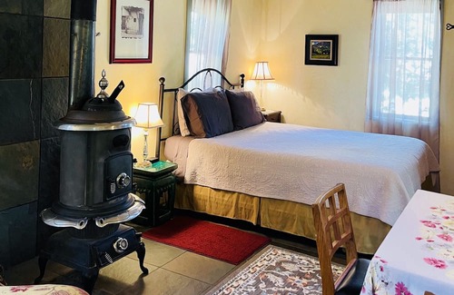 Take a break and unwind at this peaceful cabin nestled on the bank of the South Arkansas River. The cozy cabin sleeps two and is perfect for a couples or individual retreat. It offers an efficient kitchen, eating area, bathroom with a tiled stand-up shower, and comfortable seating next to a beautiful, free-standing wood burning stove. The park-like setting and calming sound of the river create the perfect getaway. STR License #22-127