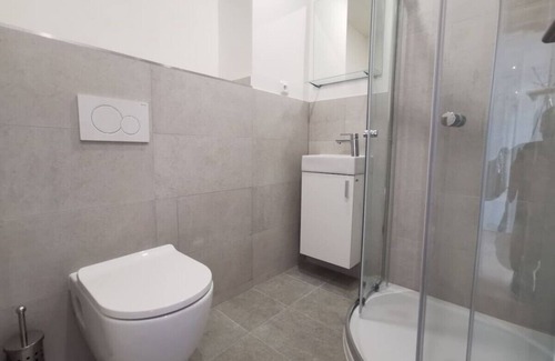 Please note that the apartment is equipped with a macerator toilet, which is designed to only handle toilet paper. To avoid damage to the system, kindly refrain from flushing anything other than toilet paper, including wet wipes, sanitary products, or any other items—even those labeled as "flushable." A sign is also posted in the bathroom as a reminder.