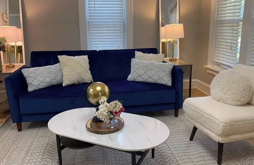This cozy 3 bedroom, 1.5 bath is designed elegantly for small families for your visit to North East Ohio. It has a fully stocked kitchen for preparing meals at home, full size fridge and new gas stove. Large dining room, seating 6+. Large living room with a convertable couch to another sleeping bed (futon style), all the bedrooms are upstairs.