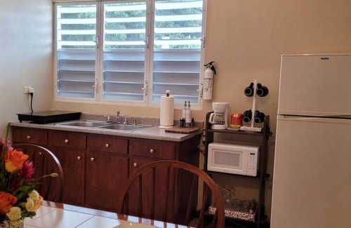 Live a peasant experience, sleep with the coqui music and wake up with the sound of the Puerto Rican rooster in a resently remodeled second floor apartment fully equipped with everything you need and individual entrance in a quiet and safe environment with A/C, TV, Netflix and Wi-Fi included. Steps from Restaurants, Bakeries, Stores, Pharmacies, Hospitals, Gas Stations, Fast Foods, Chinchorros and more. Excellent for a family of 4 or couples. Parking available for 1 vehicle on the premises.