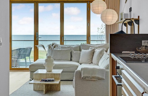 Be prepared for fantastic days on Funen, where you can look forward to a truly wonderful location on Kerteminde Bay. Here is this beautiful apartment, which is furnished with good quality solutions throughout. Natural materials, a pleasant color scheme and plenty of light through the windows provide a peaceful and harmonious setting for your stay. Best of all is the breathtaking view of the blue waters of the bay, Storebælt bridge and the bustle on the water, which you can enjoy while cooking, relaxing in the living room or having a cup of coffee on the large balcony in the morning.