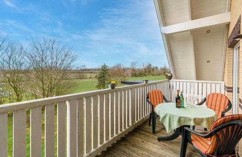 Flat Andreea is a beautiful holiday apartment near the North Sea coast. Lovingly furnished, you will find everything you need for a relaxing holiday on the North Sea coast of Schleswig-Holstein. The open-plan apartment is fully equipped and the comfortable bathroom leaves nothing to be desired. The upper bedroom can be reached via a room-saving staircase. The house is wonderfully situated on the edge of the village, just a few hundred metres from the Bordelumer Heide and Langenhorner Heide nature reserves. The surrounding area is ideal for long bike rides and walks. From the large balcony you have a fantastic view of the countryside. There is enough space to have breakfast with the whole family in the fresh North Sea air or to sit comfortably in the evening.