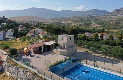 The barbecue and garden furniture are located by the pool, so you can enjoy your holiday to the full. For fans of sports activities, there is also a multifunctional playground where you can play tennis, football or basketball, and for adrenaline lovers there is also a zipline.
