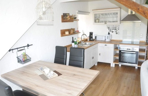 Approximately 50 sqm, newly furnished apartment for 2 people on the top floor of a detached holiday home in the beautiful Vulkaneifel, not far from the Maaren and near the Nürburgring. If required, individual rooms can be booked in addition or the entire holiday home with 4 bathrooms can be booked for up to 11 people. Dogs are welcome, horses, goats and other animals in the immediate vicinity. Riders can go on holiday with their horse, stables and pastures are available at the house. After prior agreement, there is also the possibility to ride Icelandic horses.