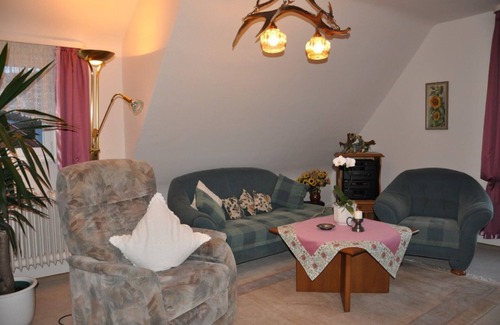 Cozy apartment for 2 - 4 people. Kitchen, living room, bedroom with double bed, cot, baby bed, a second bedroom is located one floor up in the attic, is very cozy with wood and is particularly appreciated by children, and adults feel very well. Not suitable for toddlers. Shower with toilet, additional separate toilet and a separate shower.