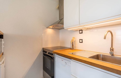 - Equipped kitchen area (stove with oven and 4-ring ceramic hob, dishwasher, microwave, table-top refrigerator with preservative compartment)