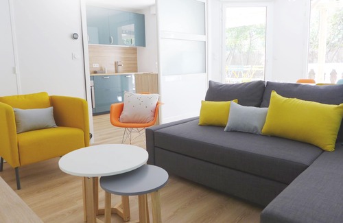 cozy apartment with whirlpool and wonderful sunny garden (provided sunbed) quiet the noise of the city yet close to the station of the Part-Dieu (10 min walk) and metro line B (Part-Dieu) and D (Garibaldi ) to easily get in Old Lyon. The apartment consists of 2 bedrooms, a living room with sleeping facilities that can be privatized, a designer kitchen, bathroom with spa bath, a terrace and a landscaped garden and a secure box in the basement.