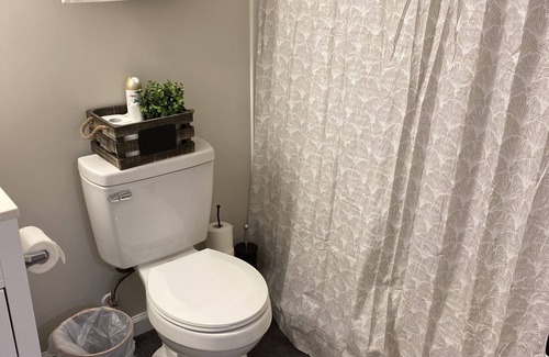 Basement studio apartment in quiet neighborhood with private entrance. Near multiple hospitals, urgent care, shopping center, and highway. Queen-sized bed with couch, private full bathroom. Kitchenette w/mini fridge, microwave, air fryer, keurig, toaster oven, crock pot, utensils, pots & pans, cups, plates, and silverware. Utility sink with collapsible sink inside (can show you what that is and how it works). You're more than welcome to use the common area kitchen on the main floor. Plenty of storage shelves and a closet. Towels/washcloths, Iron, and hair dryer provided. Shared washer and dryer, however it is separate from tenants room. Host will be able to gain access without invading privacy. Hosts access will be discussed prior to entry. Street parking and 1 designated spot in the back of the house for easy access to your private entrance.