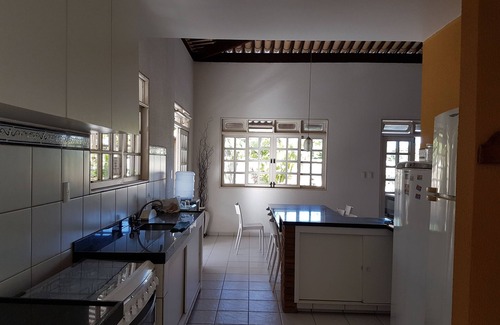 House with 5 bedrooms, 3 suites, 5 bathrooms, 4 parking spaces, barbecue, pool, billiards, playball (Tótó), already furnished. Land with 1088sqm of constructed area 350sqm (underground and ground floor) Beach house style mini-farm. Artesian well, ideal for families with children. Wifi available,