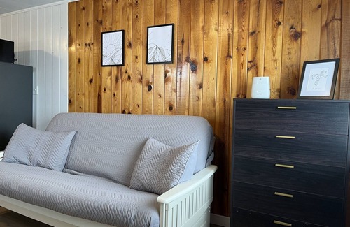 This recently remodeled vacation cabin rental at Aspen Ridge Cabins provides one queen bed and one full size fold out futon for families up to 4. Cabin has a private bath, smart TV (streaming TV service provided), fiber optic wi-fi, a refrigerator, stove/oven and kitchen with basic supplies. This cabin is perfect for couples or families with small children looking for an affordable basecamp for their outdoor activities.