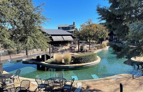 Resort, on Lake Travis in Spicewood, enjoy what this 1-bedroom cabin has to offer! With a superb king bed, AC, WiFi, and a relaxing bathtub with fireplace, guests can unwind in this fantastic retreat and enjoy all the amenities this place has to offer!