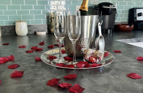 *Romantic decorations available on request for $300 fee💕. Includes fresh roses, rose petals, led candles, chocolates & a bottle of bubbly to enjoy while star gazing in an intimate hot tub.