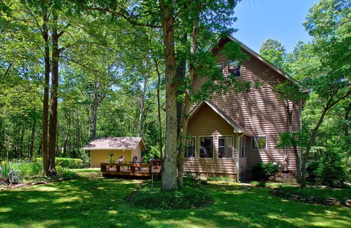 Tucked away down an old country lane, Hemlock Haven is a private, peaceful, wooded retreat you won’t want to leave. A clear, shallow creek winds its way through 5 acres of tranquil forest that surround this charming 4 bedroom, 3 bathroom home with a cozy sunroom swinging bed. The spacious living area features a cozy stone fireplace perfect for those chilly fall evenings. Large picture windows bring the outdoors in with peaceful views of the forest from every space.
