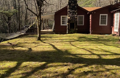 Great location between Highlands/Cashiers/ & Lake Glenville. It is about 12-15 minutes from downtown Cashiers and 17-20 minutes from downtown Highlands and 12-15 minutes frim Lake Glenville. If you are looking for a great get away just to relax and unwind-look no further. This original farmhouse sits above a gentle brook that will relax you as you listen to it glide over the rocks and cascade down. Recent improvements include a gravel walkway from the cabin to a lower rock patio area with adirondack chairs to listen to the brook. The outside of the cabin was thoroughly pressure cleaned and a brand new mattress was added to the king bed in the primary bedroom! The cabin has a wonderful covered porch as well to listen to the brook while you enjoy your cup of coffee. IT has a fully equipped kitchen that opens to the family room with a fire place and flat screen t.v. The full bath has been completely remodeled. The larger bedroom has a king bed with a large love seat that converts to a twin bed and the second bedroom has a queen bed with also a large love seat that converts to a twin bed. There is direct t.v. and high speed internet. There is a washer/dryer for your use and a hammock for relaxation and a corn hole set is provided as well. A new larger couch, recliner, and coffee table were recently added. The crawlspace was just encapsulated with a a very efficient dehumidifier to add to the comfort of your stay. This cabin is about 800 sq ft. Dogs are allowed for a $125/dog nonrefundable fee. If your stay is over a week, then $125/dog nonrefundable fee is charged again and for every week the dog is there. Please notify the owner if you desire to bring more than one dog for permission and so the appropriate amount can be charged. The barn and pastures as you approach the cabin property are not to be accessed and are not part of this rental. There are security cameras at the barn and the back pasture, and a ring flood security camera on the house pointed only at the driveway and not at the porch or back side yard. For groups larger than 3 people, there is a $25/person/stay charge. Early arrivals or late departures can "sometimes" be accommodated for an extra fee. We look forward to your stay!