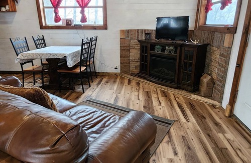 Want peaceful nights perfect for stargazing or watching fireflies, sitting around the firepit making s'mores? We got that. Full bathroom, laundry, kitchen area. Loft with 2 full size beds, queen bed downstairs, WIFI, Roku TV, all your essential cook ware, towels, bedding, soaps. Bring your clothes, horses, kids, friends and food. Spend your days hiking or horseback riding on the trails behind the property or down the road playing in the river. Want a night out at a cute small town theater, there's that too. Just up the road 15 minutes there's The Flick where you can watch a movie for cheap. Don't want to cook? There are a few options to solve that problem too. Feel like you are lost in the Ozarks but be close to everything you need.