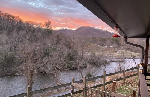 This cozy cabin offers a treasured panoramic view of the gorgeous Tuckaseegee River. Wake up to the coolness of the Smoky Mountains, drink a hot cup of coffee and let your worries melt away while sitting on the front porch taking in the panoramic views of the Tuckaseegee River. See the fly fishermen casting their fly rods and get ready to cast your own! Not into fishing? There's plenty of other fun activities in this geographical area! We are close to shops offering fishing and water sports including rafting, tubing and kayaking. We're conveniently located within 10 minutes to Dillsboro, Sylva, 30 minutes from Cherokee, Cashiers or Highlands and about 40 minutes from Asheville.