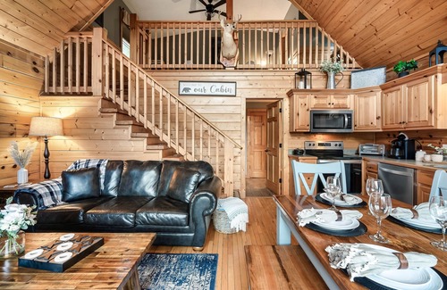 Introducing the Blue Bear Lodge - the perfect getaway for couples or small families looking to experience the beauty and serenity of the Smokies. It’s an easy drive to this 2 level cabin that sleeps 5.
