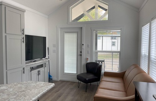 This fully furnished cabin features 1 queen bedroom, a loft with 2 queen mattresses (not full height). A kitchenette equipped with a convection/microwave oven and 2-burner cooktop to accommodate all of your meal preparations. Linens are provided at no additional cost. Enjoy the outdoor space with a picnic table, and fire ring with grill. Stay connected with our free WIFI and connect to your favorite shows and movies with your very own smart TV (stream log-ins not provided). Please note that no smoking is allowed in the cabins. This cabin can accommodate up to 6 guests.