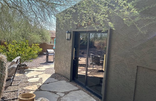 Welcome to our private and charming casita. This one acre property sits at the base of a small mountain and is on a dead end street. It is on “The Most Wished For” rentals list for Mesa , AZ . This private space features 1 queen bed, a large bathroom with a travertine snail shower for 2. Leather Recliner for 2 and a large smart tv and directv. Shower needs including towels , shampoo, conditioner and soap are included. You have Private parking and a private entrance to the rental. Your private fenced Yard includes a grill , a hammock for two, seating for 4 and a corn hole game. We welcome Pets and they enjoy their own yard to run around in. There is a small fence that separates the main yard from your yard. Enjoy the yard after hiking, biking, kayaking or exploring the national park and the county park(walk) that are close by. Walk to our local hike called Brown Mountain(spook hill for locals). Stop for a beer at our local craft beer and burger joint ( walk home).