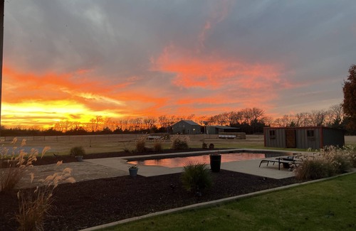 Relaxing environment with hammock, bench swing, pool, and lovely sunsets. Fun view of farm animals including a mini donkey, llama, and two dwarf goats!