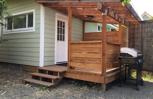 The Cottage is nestled between cherry and pear orchards and is a separate unit with its own private parking and entrance. Abundant natural light pour into the entire cottage. There is about 350 square feet of space with additional outdoor covered patios. Back patio is easily used to store bikes and other gear.