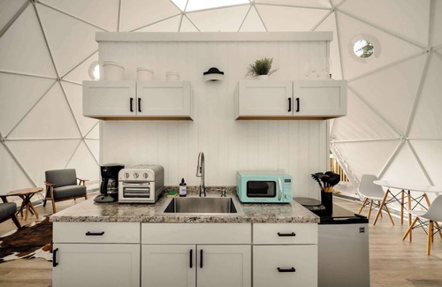 - Modern furnishings throughout the domes and the chalet cabin