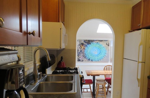 Supplies includes clam guns for those special low tides as well as crabbing gear and an outdoor crab cooker. Our Cottage is three blocks to the easiest spot to crab- the 12th Avenue bridge. Just drop your pots, go back to the house to relax and walk back a few hours later for your dinner! (License is required for both crabbing and clamming.) There is also a Weber outdoor grill and personal outdoor fire pit in the private fully fenced front yard. Firewood supplied! There is even a playhouse for the kids! There are beach chairs, a beach blanket for the sand to keep you comfortable on the beach, and plastic sand toys for kids stored in the shed.