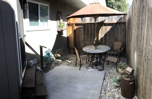 A charming, cozy condo right on historic Mill Street in the country setting of the Sierra foothills. Out the front door, walk two minutes and you are there! No transportation needed. Newly remodeled, sparkling clean in warm, rustic farmhouse decor. Patio seating and outdoor grill, dog friendly. You will be delighted at the convenience of having so many entertainment options all within walking distance of one half to three blocks. You will be pleased to take in four star restaurants, wine tasting, antiquing, shopping boutiques, going to the movies, live theater and street fairs throughout the year. Music and entertainment are big in the area so look up Center of the Arts. Do you need some down time? Stay in with the comforts of home with a fully equipped kitchen. The grocer, banks, spa, coffee house are steps away. For a more active time away you can enjoy hiking, biking, and swimming at the many scenic trails, rivers and lakes ten to thirty minutes away by car.