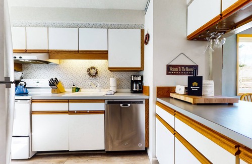 Inside, you'll find a well-equipped kitchen with all the essentials, including a fridge, stove, oven, dishwasher, microwave, coffee maker, and more. The cozy living room is the perfect spot to unwind after a day of exploring, with comfortable seating and a TV for entertainment.