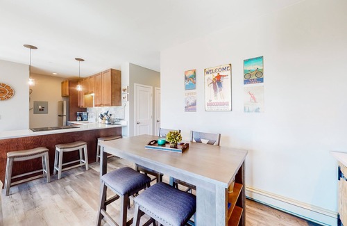 Enjoy access to outdoor recreation and all the comforts of home (including radiant floor heating) at this vacation condo. Indulge your inner chef in the well-equipped kitchen. When it's time to eat, the kitchen bar and adjacent dining table offer seating for eight. After dinner, settle in for a movie night in the living area, where a wood-burning fireplace adds allure. Or, step outside to the furnished balcony and take in the scenic mountain views.
