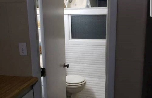 This adorable converted RV offers 410 square feet of cuteness! The property offers a full kitchen, bath, large living space, dining area, and 1 bedroom with a full size bed. We have also added an adorable futon in the living room to accommodate guests.