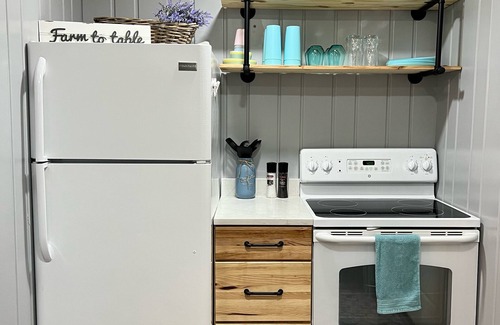 We have all of the essentials of home. The entire place is NEW. Water softener and brand new bathroom with large shower. Make yourself at home with our stocked kitchen with pots & pans, plates, bowls, silverware, paper plates, cups, wine glasses, beer mugs, cooking utensils, etc. Enjoy your morning coffee with our Keurig with k-cups, creamer, and sweetener. Complementary bath soap, shampoo, conditioner, makeup wipes, Q-tips, etc. Relax with one of our cozy throws while watching Cable TV in the living room and bedroom with access to Netflix, Hulu, Disney+, etc. High-speed WiFi provided and the bar area can double as a central work space. Don’t feel like cooking? Don’t worry, Dairy Queen, China Wok, and Joe’s Pizza are steps away!