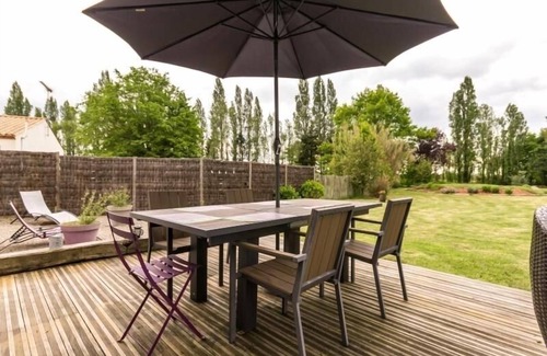 Gîte quietly located in a green setting of 8000 m², 3 km from the village and 1.5 km from Lake Grand Lieu, near the owners' house. Enclosed garden of 2500 m² with 2 terraces. Boules field, ping-pong and 1 adult bike available.