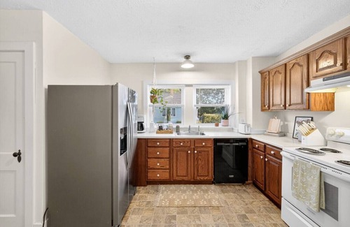 Like visiting grandma's house, but with a modern twist. This 2 bedroom, 1 bathroom apartment (side by side duplex) has been thoughtfully appointed with comfortable furniture, quaint decor & all necessities for your visit. The first floor offers a spacious living room, connected to a large dining room and open kitchen (pots, pans, microwave, toaster, coffee pot, tea kettle, etc.). On the 2nd floor, our guests will find 2 bedrooms (1 queen and 1 king bed), a dedicated work space & a full bathroom.