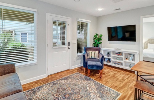 Stepping into your quaint yet charming oasis, you'll find that the space boasts with natural light, and an ample amount of comfortable seating for everyone in your party. The kitchenette features beautiful butcher countertops, a mini fridge, microwave and coffee maker; everything you need to enjoy leftovers from one of Savannah’s many fine dining establishments!