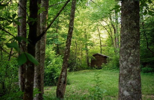 Enjoy a get-away in an comfortable cottage overlooking two beautiful waterfalls on the cascading Hickory Nut Creek. The cottage is nestled at the base of Little Bearwallow Mountain next to 200 acres of natural forest with five miles of hiking trails. It is located only 17 miles from downtown Asheville, in the heart of the incredible Hickory Nut Gorge. This all-log cottage contains a kitchen/living room, bathroom and a bedroom that sleeps two people. It is part of the Laughing Waters Retreat Center in the Hickory Nut Forest Community. A special place for a peaceful, quiet retreat in these beautiful sacred mountains! This area is still recovering from Hurricane Helene. Unfortunately, you won't be able to access Lake Lure right now.